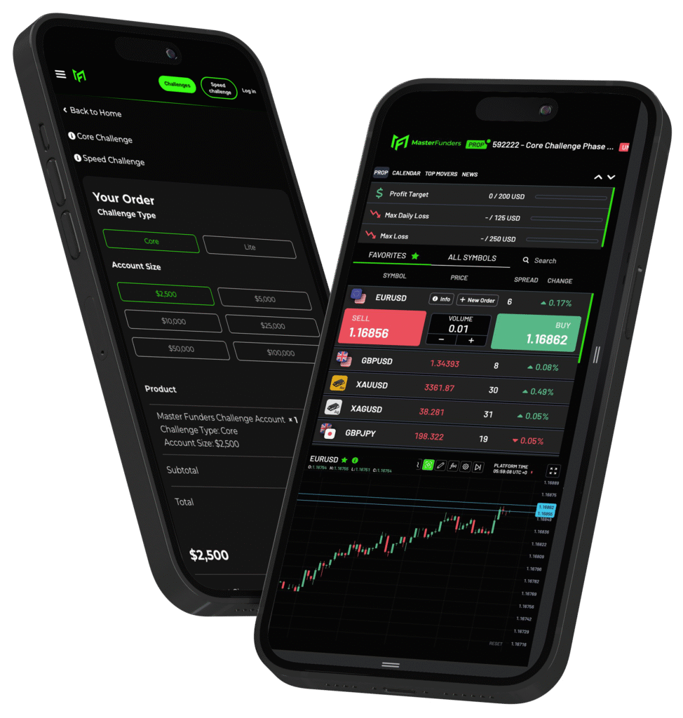 All MasterFunders accounts use a static, balance-based drawdown system. That means your maximum loss level doesn’t trail behind your equity; it’s fixed based on your account balance. In the Core Challenge, you have a 5% daily drawdown and a 10% maximum loss. The Lite Challenge also has a 5% daily limit but only a 5% maximum loss, which makes it stricter. The Speed Challenge gives you a 10% daily and 10% maximum loss, but you only have 24 hours to pass. For Instant Funding accounts, the rules are tighter: a 3% daily drawdown and a 6% maximum loss.